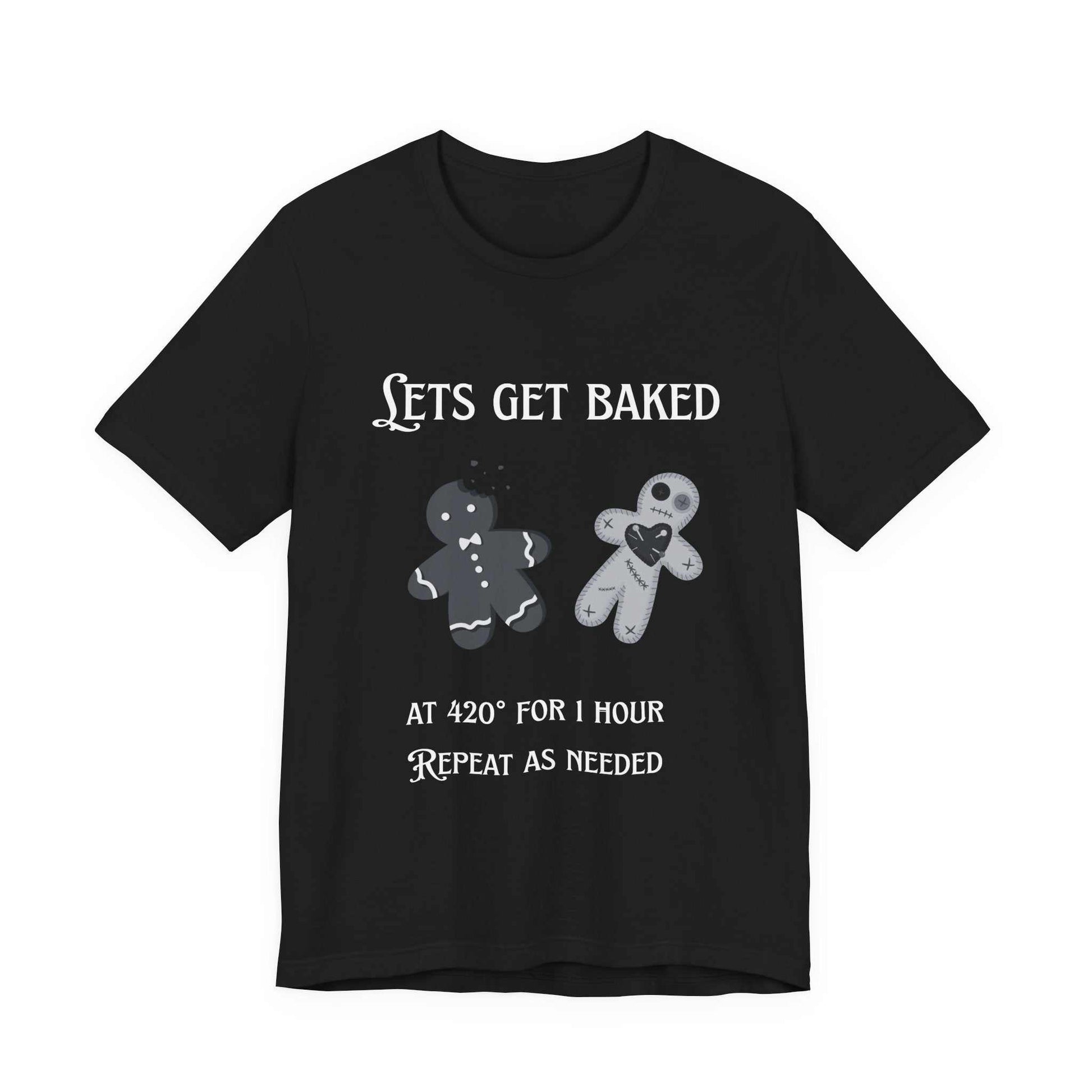 The Let's Get Baked holiday t-shirt is a festive T-shirt featuring a design of a gingerbread cookie voodoo doll ready to get baked. Let's Get Baked Holiday T-shirt is perfect for the holiday season and anyone looking to spread some holiday cheer. The Let's Get Baked Holiday T-shirt Ideal for adults celebrating Christmas and baking enthusiasts.