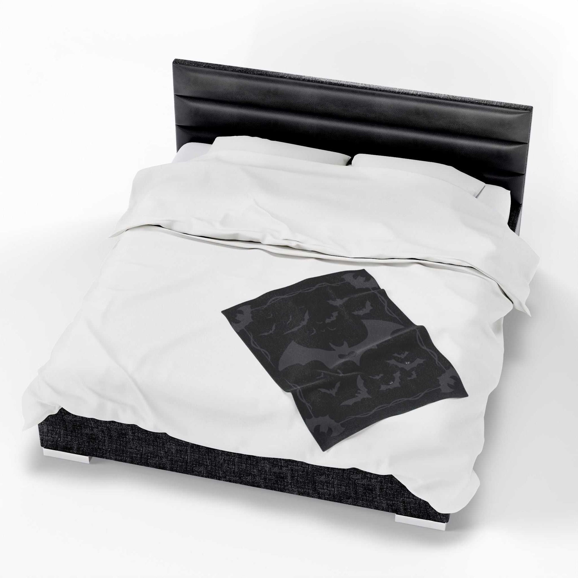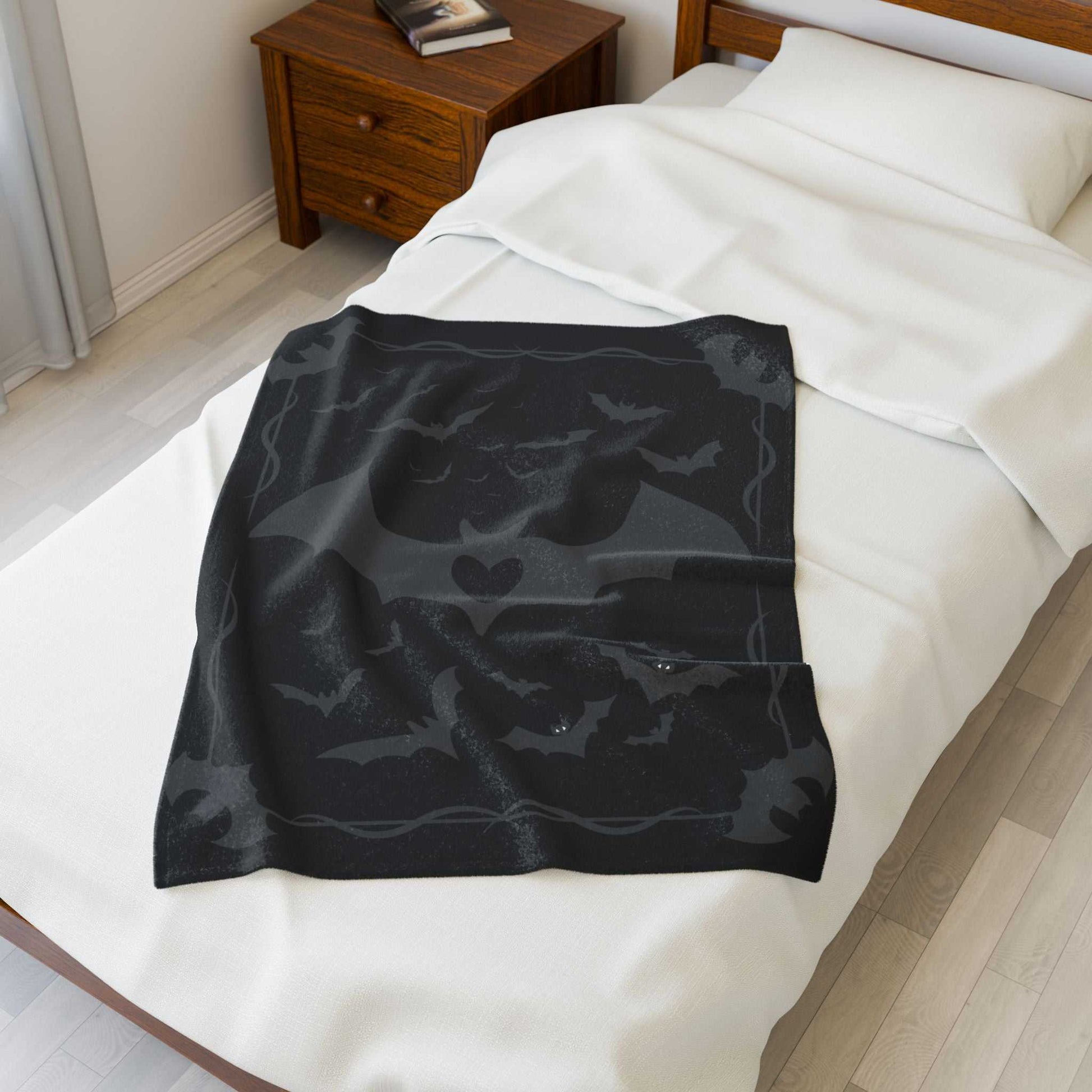 Spooky Batheart Velveteen Plush Blanket, Cozy Halloween Throw, Cute Home Decor, Gift for Bat Lovers, Perfect for Fall Celebrations