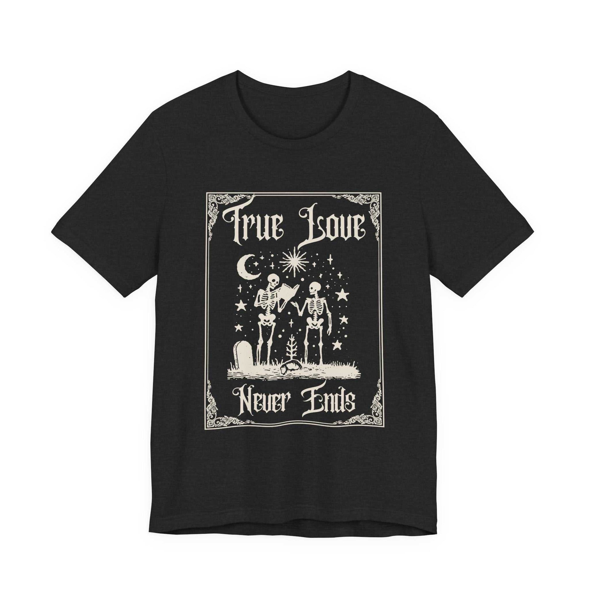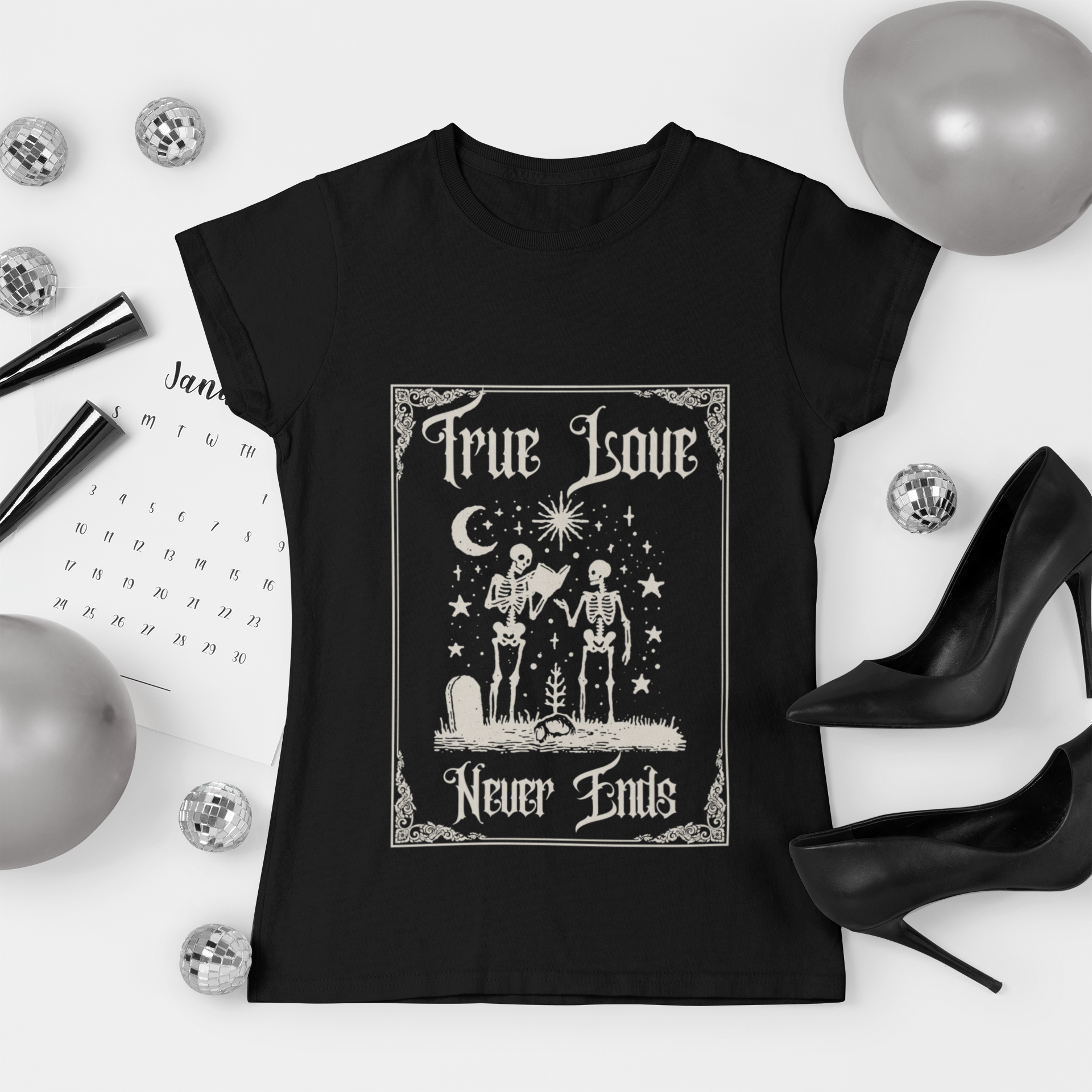 This True Love Never Ends T-shirt fits like a well-loved favorite. The True Love Never Ends T-shirt is soft cotton and quality print make users fall in love with it over and over again. The True Love Never Ends T-shirt has a ribbed knit collars to bolster shaping. The True Love Never Ends T-shirt shoulders are tapered for a better fit over time. Dual side seams hold the garment's shape for longer.